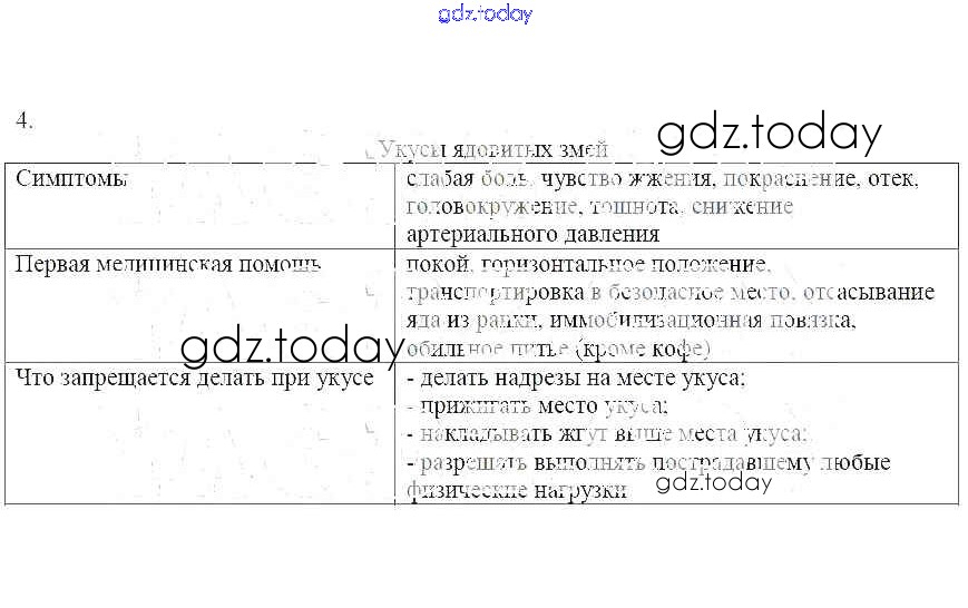На страницах сайта gdz.today вы найдете учебный и вспомогательный материал, направленный на улучшения знаний школьной программы. ГДЗ - онлайн мир знаний Решение к теме 26. Оказание первой медицинской помощи при укусах змей и насекомых 4 Рабочей тетради по ОБЖ для 6 класса Егорова Лицей 2012