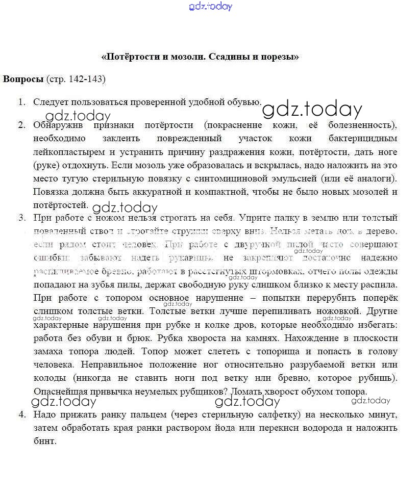 На страницах сайта gdz.today вы найдете учебный и вспомогательный материал, направленный на улучшения знаний школьной программы. ГДЗ - онлайн мир знаний Страницы (решение) 142-143 Учебнику по ОБЖ для 6 класса Фролов, Шолох Дрофа 2017