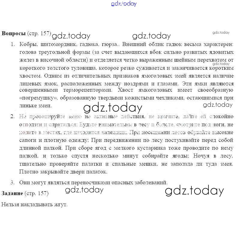 На страницах сайта gdz.today вы найдете учебный и вспомогательный материал, направленный на улучшения знаний школьной программы. ГДЗ - онлайн мир знаний Страницы (решение) 157 Учебнику по ОБЖ для 6 класса Фролов, Шолох Дрофа 2017