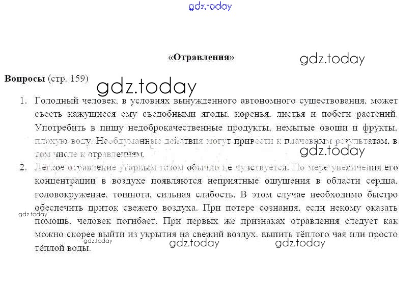На страницах сайта gdz.today вы найдете учебный и вспомогательный материал, направленный на улучшения знаний школьной программы. ГДЗ - онлайн мир знаний Страницы (решение) 159 Учебнику по ОБЖ для 6 класса Фролов, Шолох Дрофа 2017