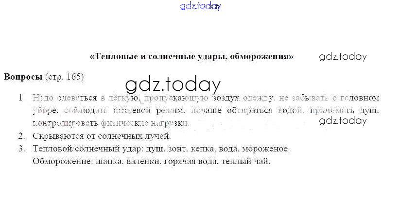 На страницах сайта gdz.today вы найдете учебный и вспомогательный материал, направленный на улучшения знаний школьной программы. ГДЗ - онлайн мир знаний Страницы (решение) 165 Учебнику по ОБЖ для 6 класса Фролов, Шолох Дрофа 2017