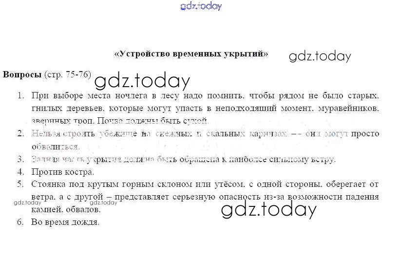 На страницах сайта gdz.today вы найдете учебный и вспомогательный материал, направленный на улучшения знаний школьной программы. ГДЗ - онлайн мир знаний Страницы (решение) 75-76 Учебнику по ОБЖ для 6 класса Фролов, Шолох Дрофа 2017