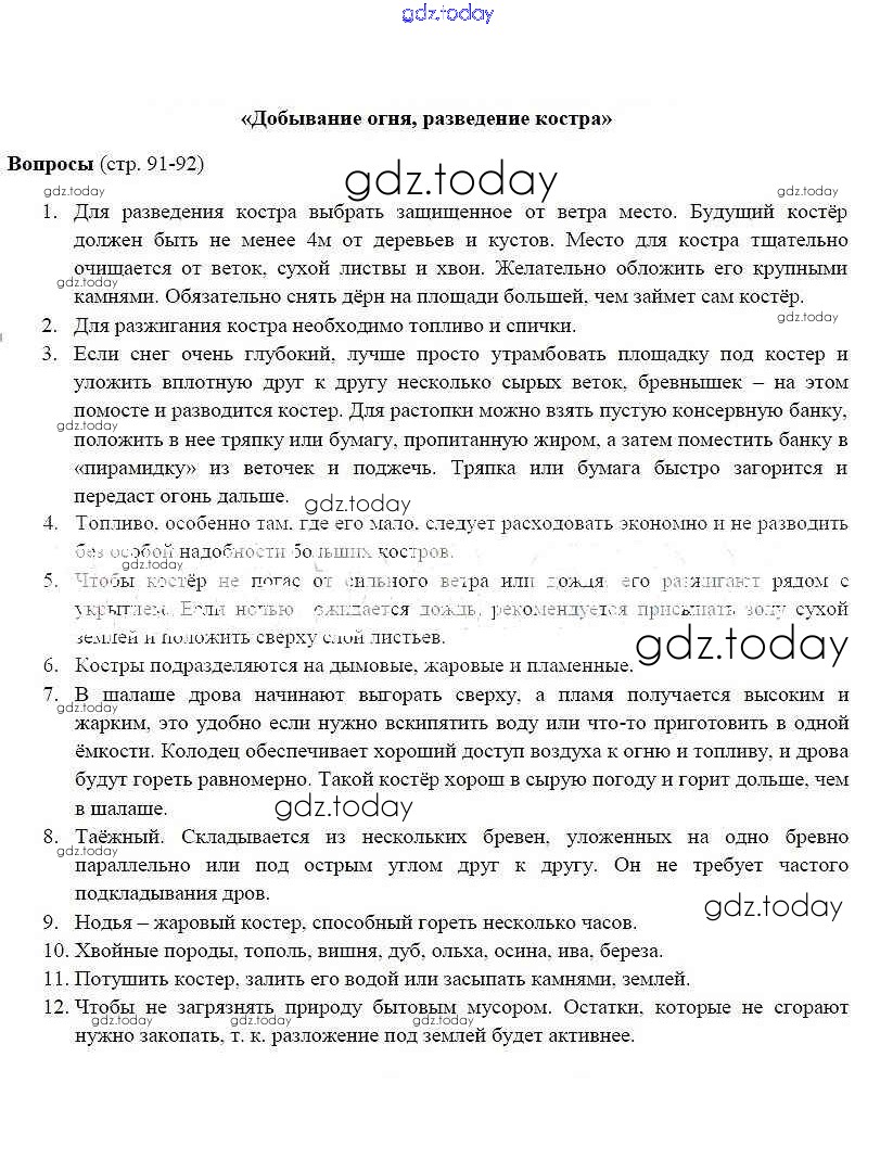 На страницах сайта gdz.today вы найдете учебный и вспомогательный материал, направленный на улучшения знаний школьной программы. ГДЗ - онлайн мир знаний Страницы (решение) 91-92 Учебнику по ОБЖ для 6 класса Фролов, Шолох Дрофа 2017