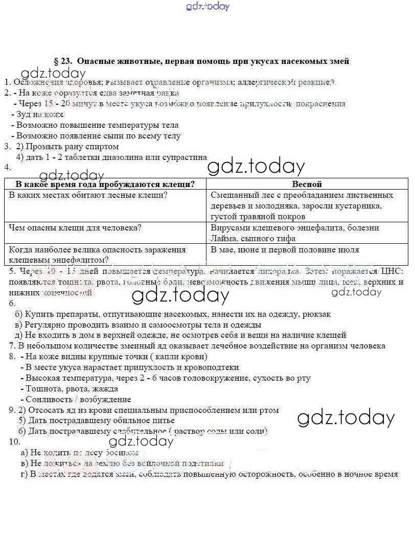 На страницах сайта gdz.today вы найдете учебный и вспомогательный материал, направленный на улучшения знаний школьной программы. ГДЗ - онлайн мир знаний Решение к параграфам §23 Рабочей тетради по ОБЖ для 6 класса Латчук, Миронов Дрофа Вертикаль 2017