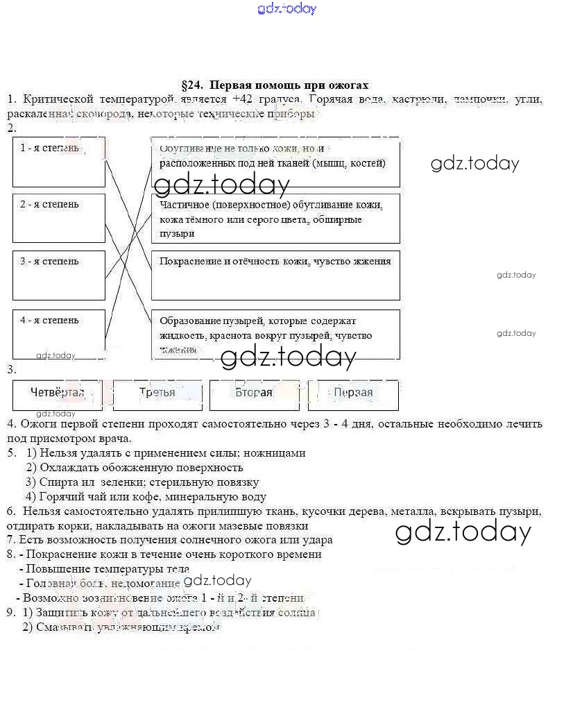 На страницах сайта gdz.today вы найдете учебный и вспомогательный материал, направленный на улучшения знаний школьной программы. ГДЗ - онлайн мир знаний Решение к параграфам §24 Рабочей тетради по ОБЖ для 6 класса Латчук, Миронов Дрофа Вертикаль 2017