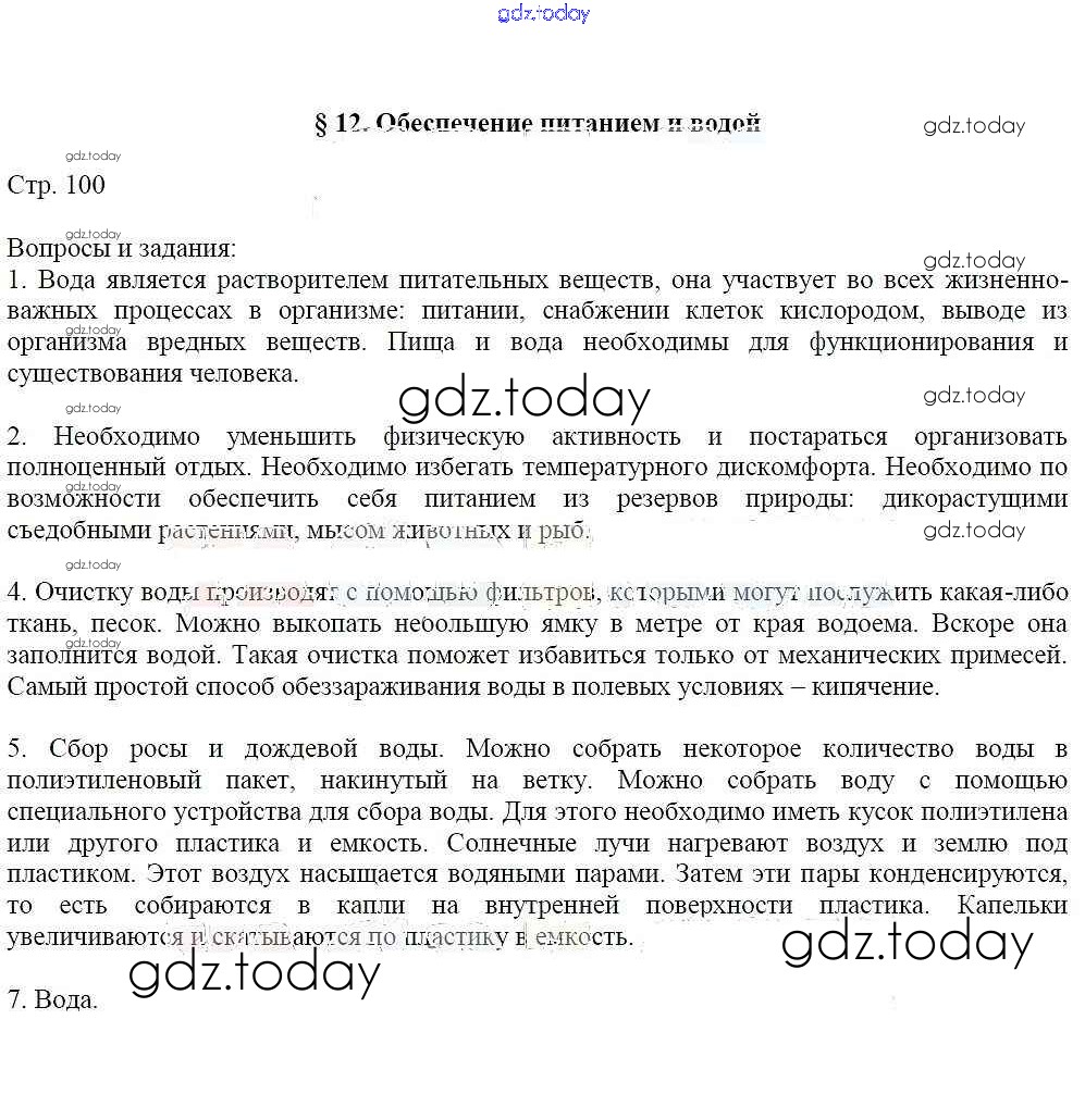 На страницах сайта gdz.today вы найдете учебный и вспомогательный материал, направленный на улучшения знаний школьной программы. ГДЗ - онлайн мир знаний Страницы (решение) 100 Учебнику по ОБЖ для 6 класса Маслов, Марков Дрофа Вертикаль 2018