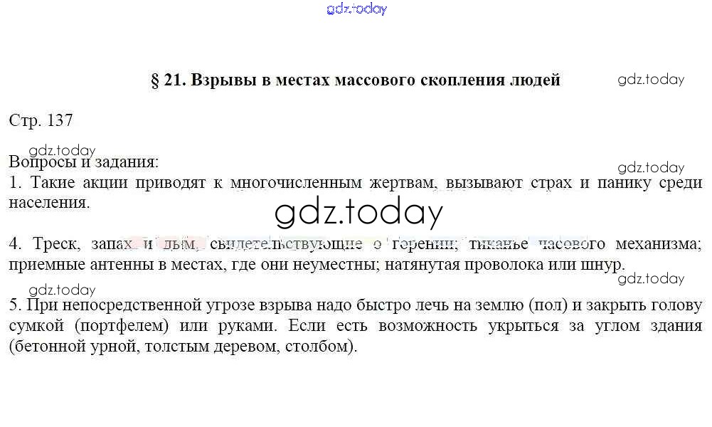 На страницах сайта gdz.today вы найдете учебный и вспомогательный материал, направленный на улучшения знаний школьной программы. ГДЗ - онлайн мир знаний Страницы (решение) 137 Учебнику по ОБЖ для 6 класса Маслов, Марков Дрофа Вертикаль 2018