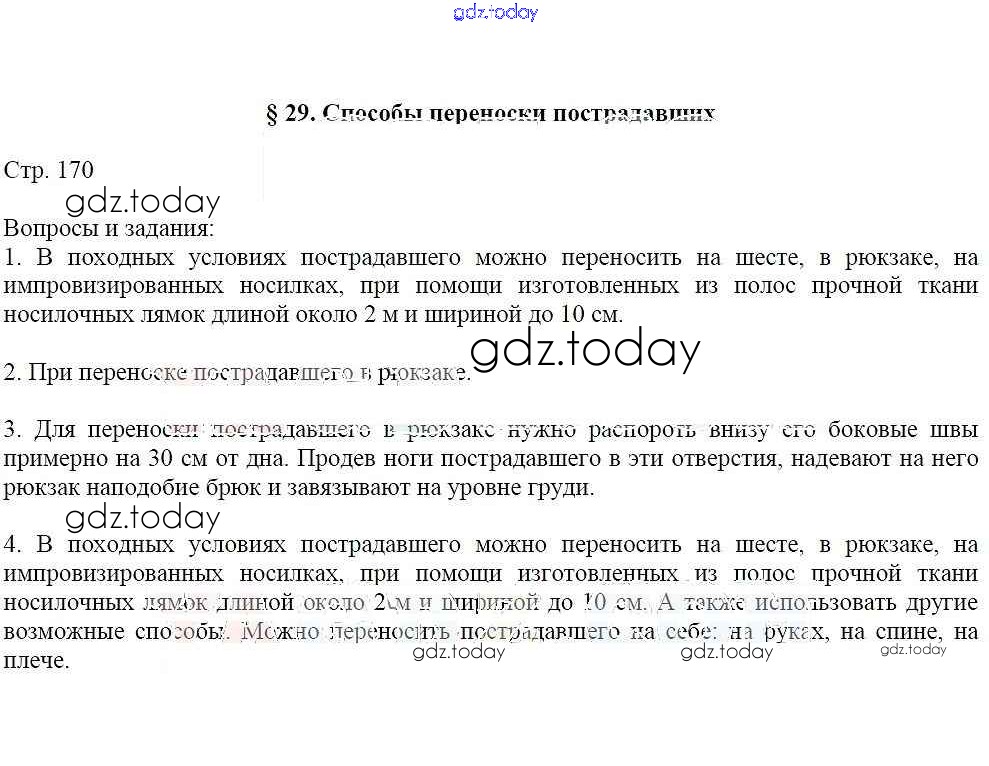 На страницах сайта gdz.today вы найдете учебный и вспомогательный материал, направленный на улучшения знаний школьной программы. ГДЗ - онлайн мир знаний Страницы (решение) 170 Учебнику по ОБЖ для 6 класса Маслов, Марков Дрофа Вертикаль 2018