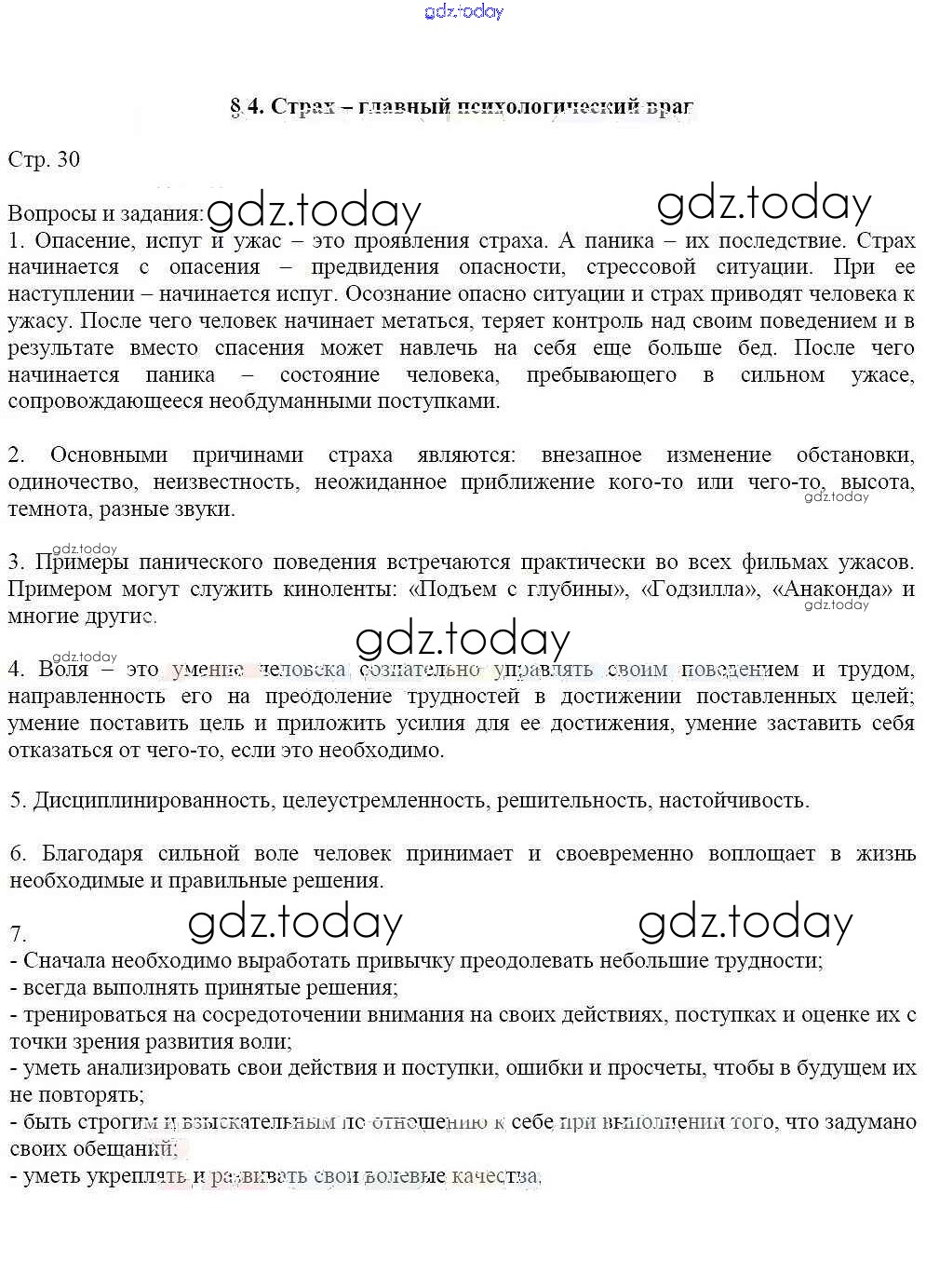 На страницах сайта gdz.today вы найдете учебный и вспомогательный материал, направленный на улучшения знаний школьной программы. ГДЗ - онлайн мир знаний Страницы (решение) 30 Учебнику по ОБЖ для 6 класса Маслов, Марков Дрофа Вертикаль 2018