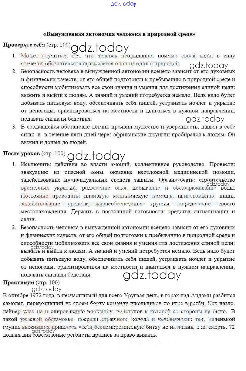 На страницах сайта gdz.today вы найдете учебный и вспомогательный материал, направленный на улучшения знаний школьной программы. ГДЗ - онлайн мир знаний Страницы (решение) 100 Учебнику по ОБЖ для 6 класса Смирнов, Хренников Просвещение 2018