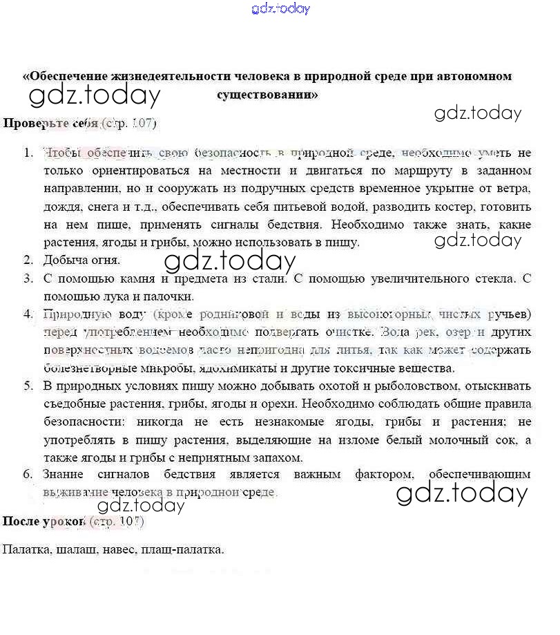 На страницах сайта gdz.today вы найдете учебный и вспомогательный материал, направленный на улучшения знаний школьной программы. ГДЗ - онлайн мир знаний Страницы (решение) 107 Учебнику по ОБЖ для 6 класса Смирнов, Хренников Просвещение 2018