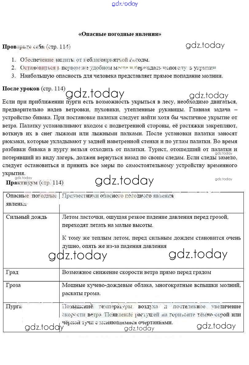 На страницах сайта gdz.today вы найдете учебный и вспомогательный материал, направленный на улучшения знаний школьной программы. ГДЗ - онлайн мир знаний Страницы (решение) 114 Учебнику по ОБЖ для 6 класса Смирнов, Хренников Просвещение 2018