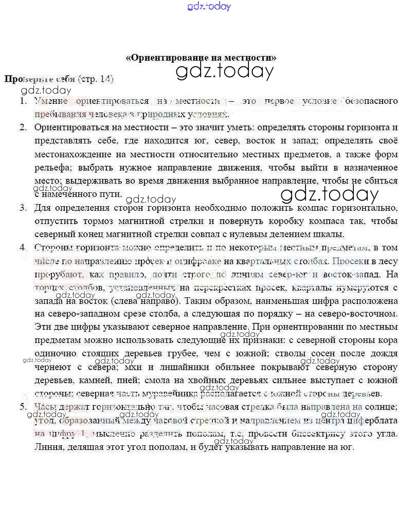 На страницах сайта gdz.today вы найдете учебный и вспомогательный материал, направленный на улучшения знаний школьной программы. ГДЗ - онлайн мир знаний Страницы (решение) 14 Учебнику по ОБЖ для 6 класса Смирнов, Хренников Просвещение 2018
