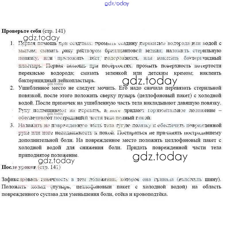 На страницах сайта gdz.today вы найдете учебный и вспомогательный материал, направленный на улучшения знаний школьной программы. ГДЗ - онлайн мир знаний Страницы (решение) 141 Учебнику по ОБЖ для 6 класса Смирнов, Хренников Просвещение 2018