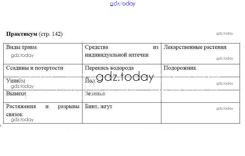 Ответы к Страницы (решение) 142 Учебнику по ОБЖ для 6 класса Смирнов, Хренников Просвещение 2018