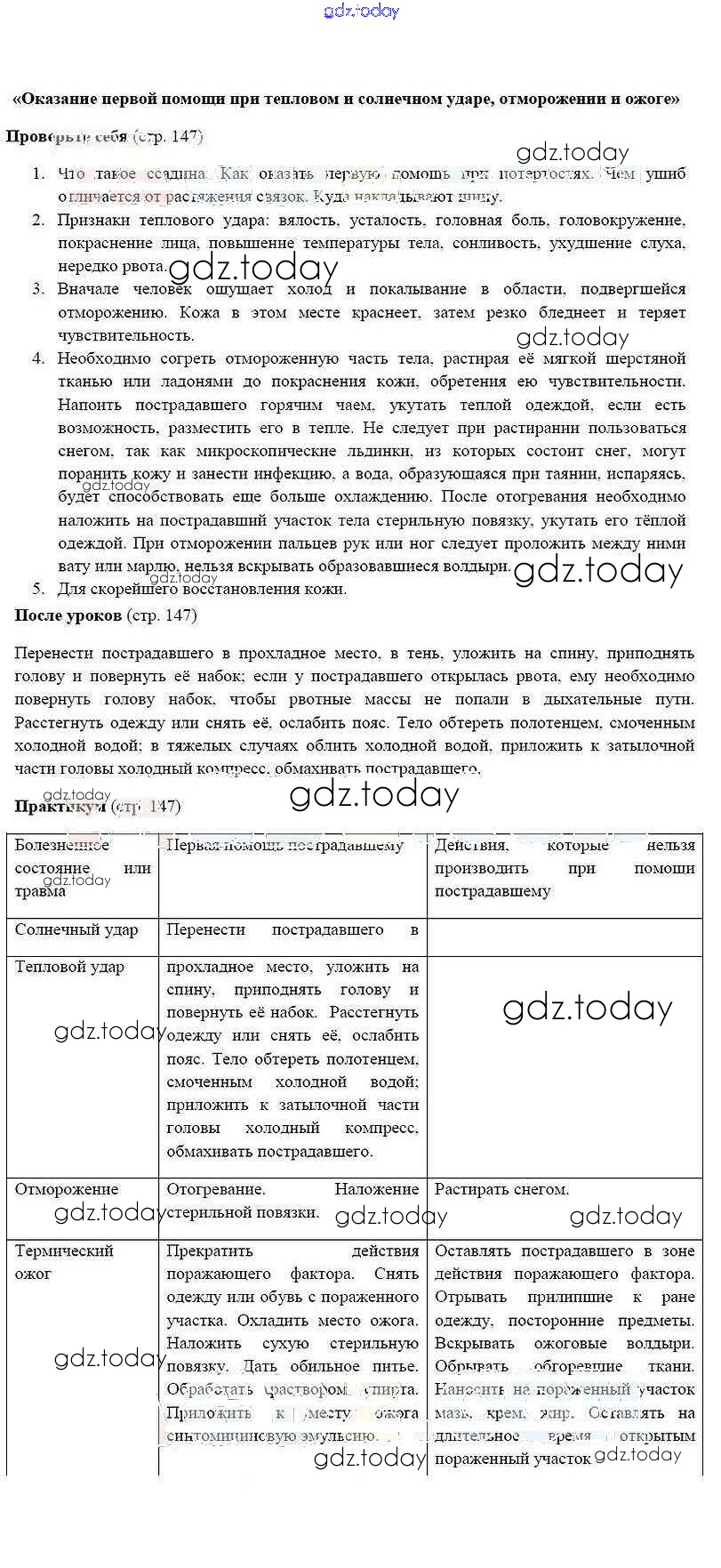 На страницах сайта gdz.today вы найдете учебный и вспомогательный материал, направленный на улучшения знаний школьной программы. ГДЗ - онлайн мир знаний Страницы (решение) 147 Учебнику по ОБЖ для 6 класса Смирнов, Хренников Просвещение 2018