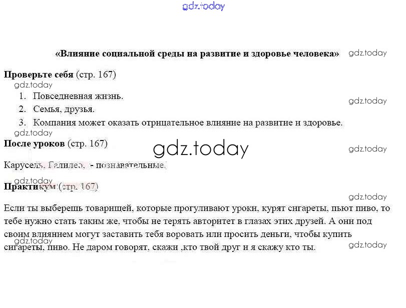 На страницах сайта gdz.today вы найдете учебный и вспомогательный материал, направленный на улучшения знаний школьной программы. ГДЗ - онлайн мир знаний Страницы (решение) 167 Учебнику по ОБЖ для 6 класса Смирнов, Хренников Просвещение 2018