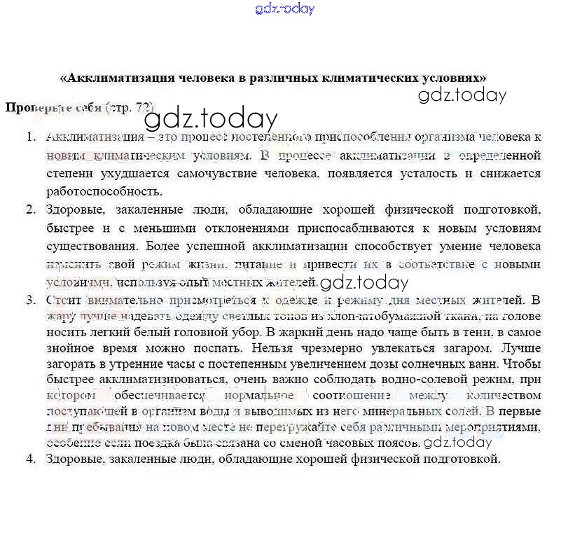 На страницах сайта gdz.today вы найдете учебный и вспомогательный материал, направленный на улучшения знаний школьной программы. ГДЗ - онлайн мир знаний Страницы (решение) 72 Учебнику по ОБЖ для 6 класса Смирнов, Хренников Просвещение 2018
