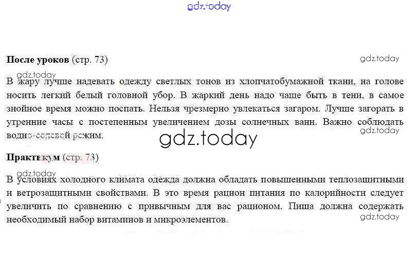 На страницах сайта gdz.today вы найдете учебный и вспомогательный материал, направленный на улучшения знаний школьной программы. ГДЗ - онлайн мир знаний Страницы (решение) 73 Учебнику по ОБЖ для 6 класса Смирнов, Хренников Просвещение 2018