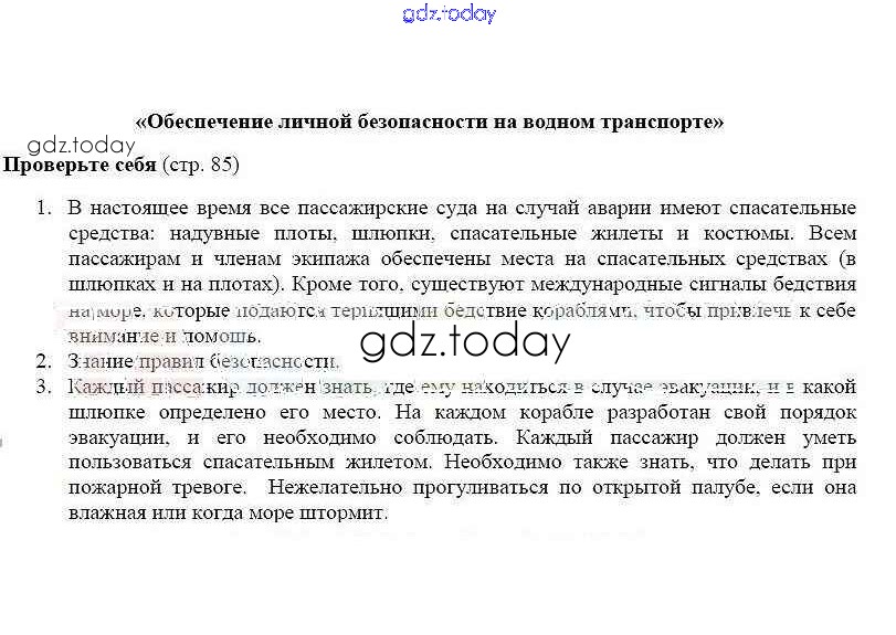 На страницах сайта gdz.today вы найдете учебный и вспомогательный материал, направленный на улучшения знаний школьной программы. ГДЗ - онлайн мир знаний Страницы (решение) 85 Учебнику по ОБЖ для 6 класса Смирнов, Хренников Просвещение 2018