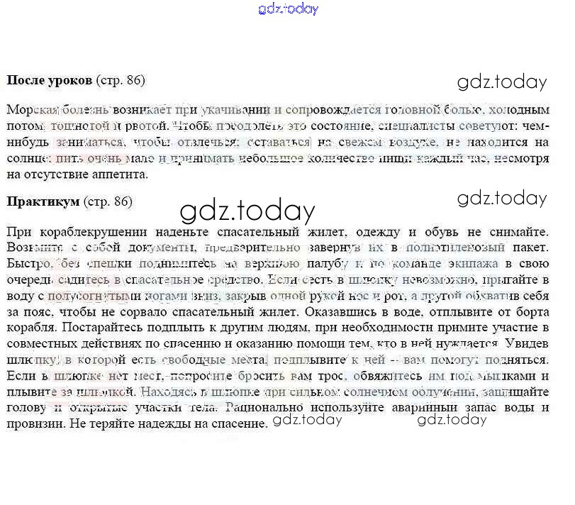 На страницах сайта gdz.today вы найдете учебный и вспомогательный материал, направленный на улучшения знаний школьной программы. ГДЗ - онлайн мир знаний Страницы (решение) 86 Учебнику по ОБЖ для 6 класса Смирнов, Хренников Просвещение 2018