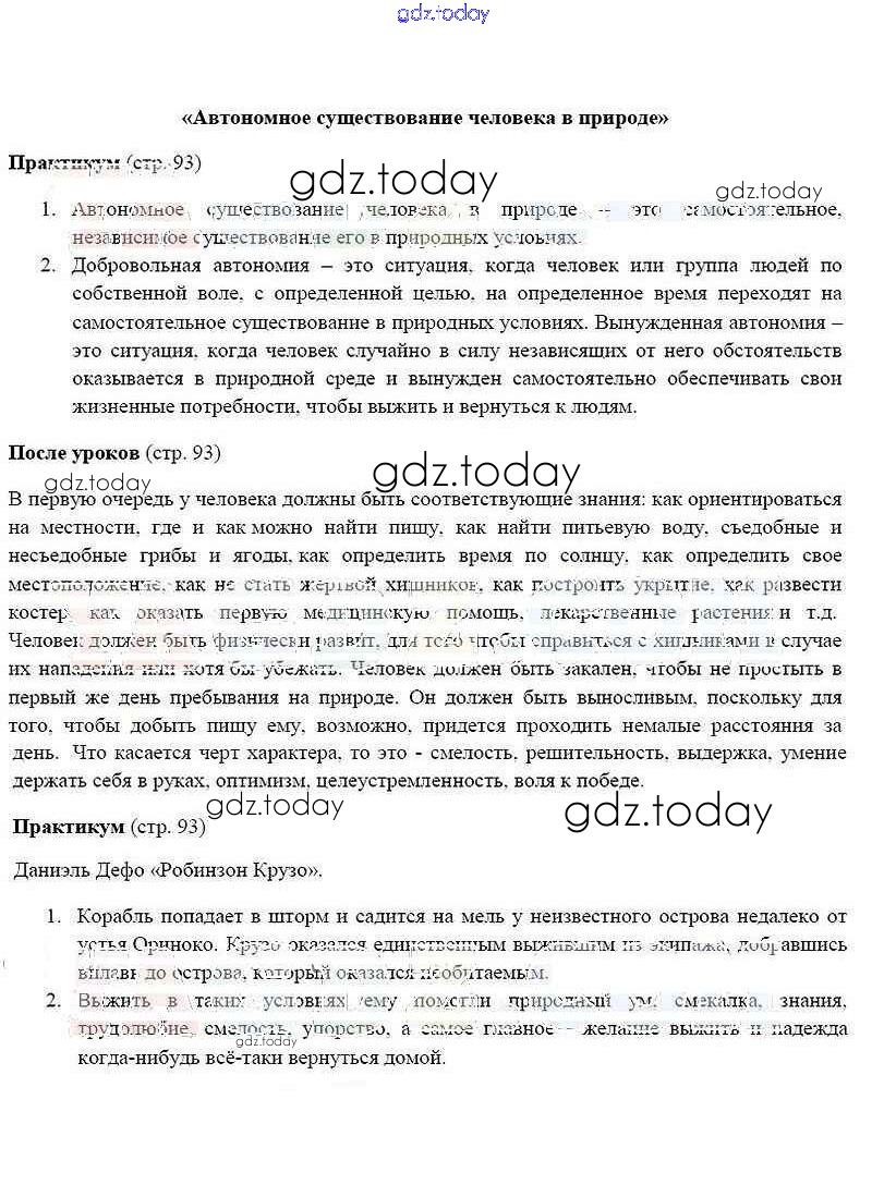 На страницах сайта gdz.today вы найдете учебный и вспомогательный материал, направленный на улучшения знаний школьной программы. ГДЗ - онлайн мир знаний Страницы (решение) 93 Учебнику по ОБЖ для 6 класса Смирнов, Хренников Просвещение 2018