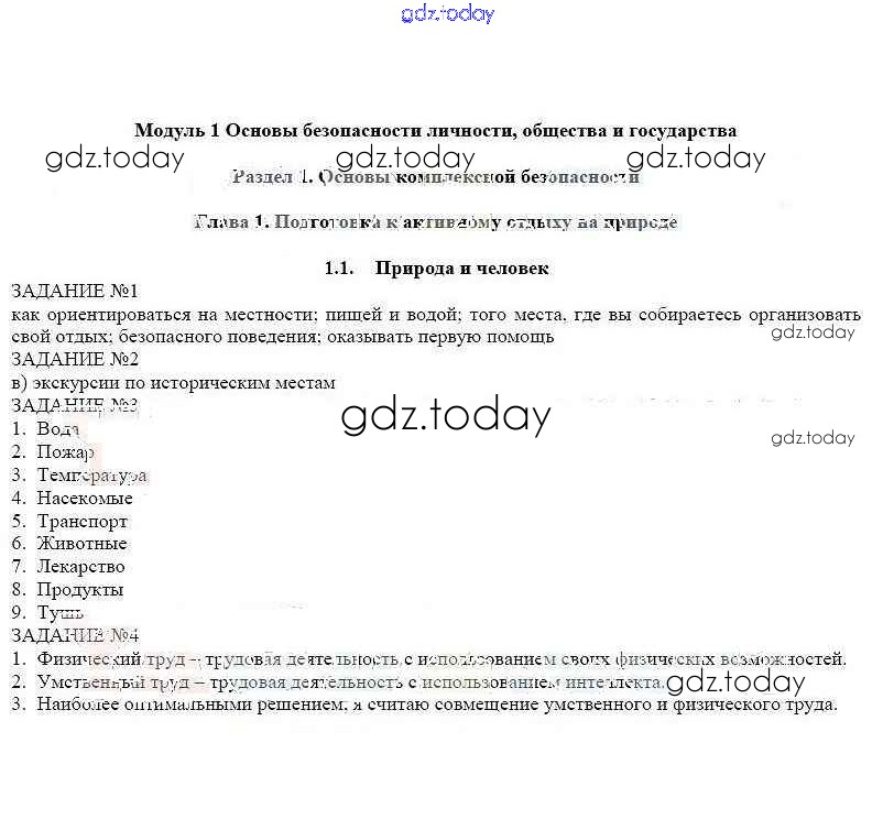 На страницах сайта gdz.today вы найдете учебный и вспомогательный материал, направленный на улучшения знаний школьной программы. ГДЗ - онлайн мир знаний Решение к главе 1 1.1 Рабочей тетради по ОБЖ для 6 класса Смирнов, Хренников Просвещение 2016