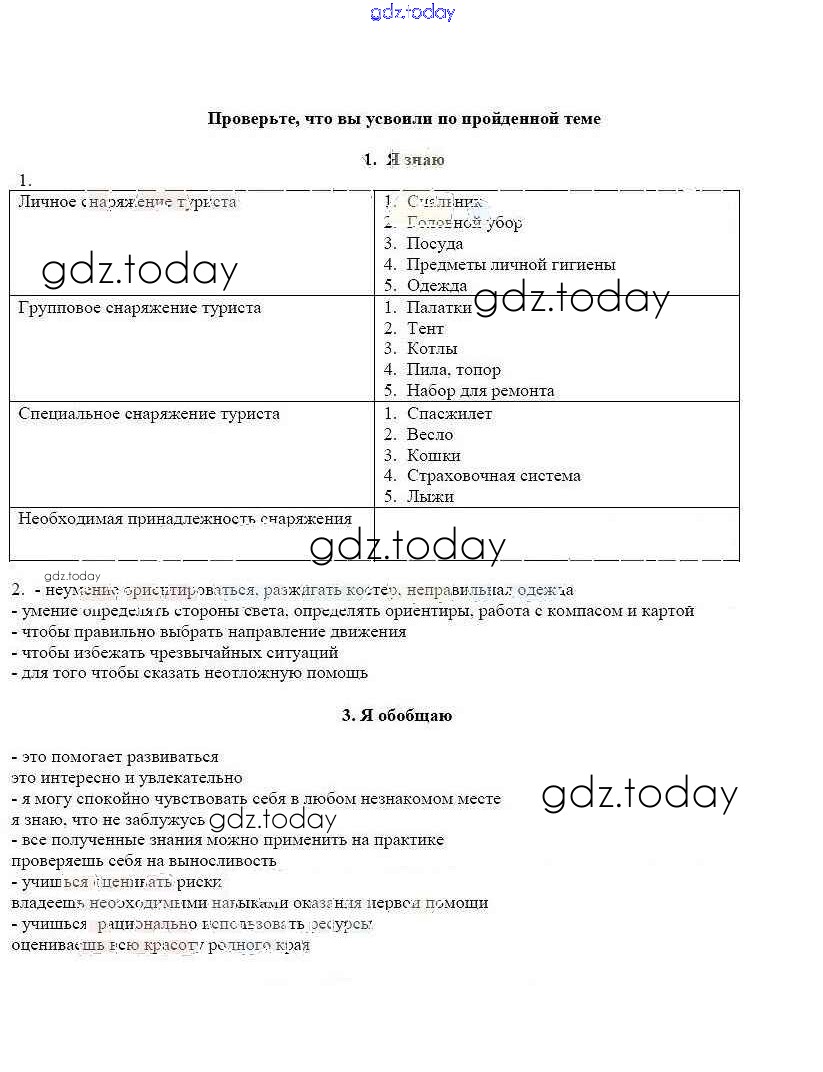 На страницах сайта gdz.today вы найдете учебный и вспомогательный материал, направленный на улучшения знаний школьной программы. ГДЗ - онлайн мир знаний Решение к главе 1 Проверьте свои знания Рабочей тетради по ОБЖ для 6 класса Смирнов, Хренников Просвещение 2016