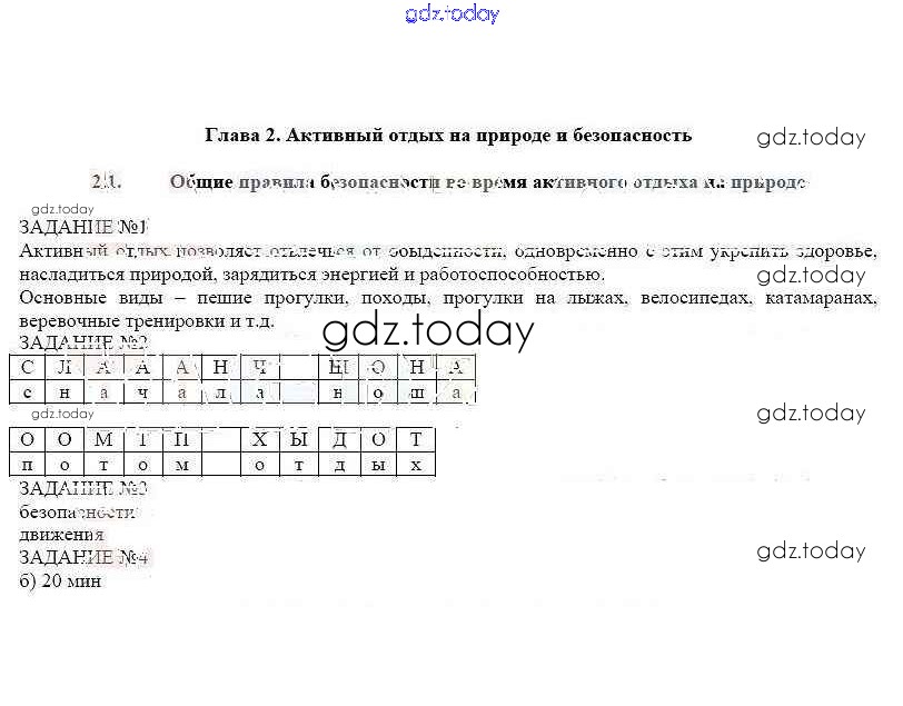 Ответы к Решение к главе 2 2.1 Рабочей тетради по ОБЖ для 6 класса Смирнов, Хренников Просвещение 2016
