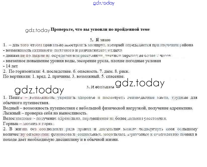 На страницах сайта gdz.today вы найдете учебный и вспомогательный материал, направленный на улучшения знаний школьной программы. ГДЗ - онлайн мир знаний Решение к главе 2 Проверьте свои знания Рабочей тетради по ОБЖ для 6 класса Смирнов, Хренников Просвещение 2016