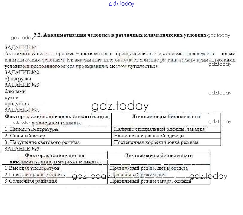 Ответы к Решение к главе 3 3.2 Рабочей тетради по ОБЖ для 6 класса Смирнов, Хренников Просвещение 2016