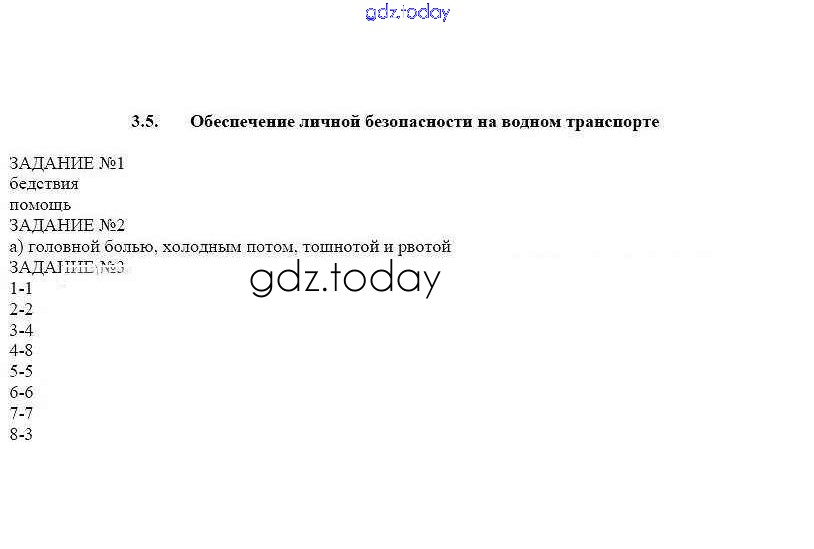 На страницах сайта gdz.today вы найдете учебный и вспомогательный материал, направленный на улучшения знаний школьной программы. ГДЗ - онлайн мир знаний Решение к главе 3 3.5 Рабочей тетради по ОБЖ для 6 класса Смирнов, Хренников Просвещение 2016