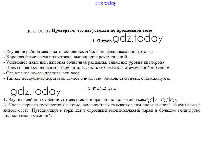 На страницах сайта gdz.today вы найдете учебный и вспомогательный материал, направленный на улучшения знаний школьной программы. ГДЗ - онлайн мир знаний Решение к главе 3 Проверьте свои знания Рабочей тетради по ОБЖ для 6 класса Смирнов, Хренников Просвещение 2016