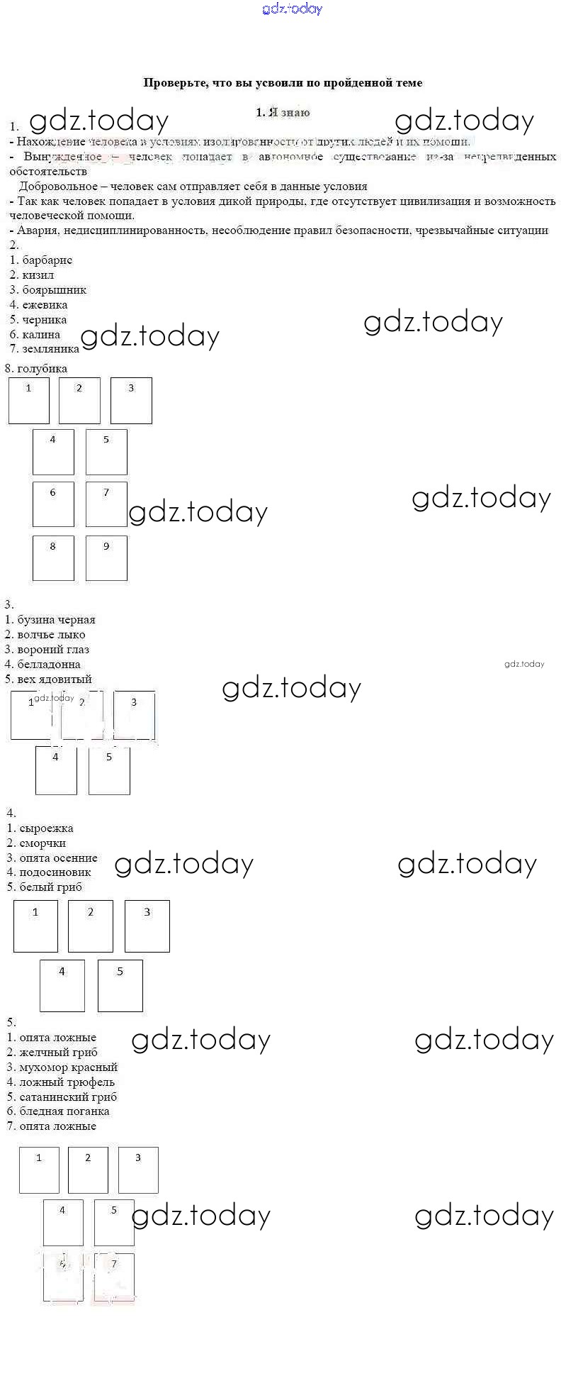 Ответы к Решение к главе 4 Проверьте свои знания Рабочей тетради по ОБЖ для 6 класса Смирнов, Хренников Просвещение 2016