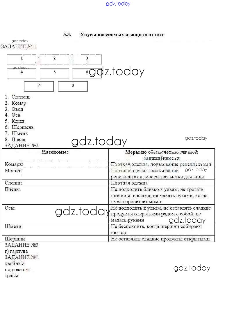 Ответы к Решение к главе 5 5.3 Рабочей тетради по ОБЖ для 6 класса Смирнов, Хренников Просвещение 2016