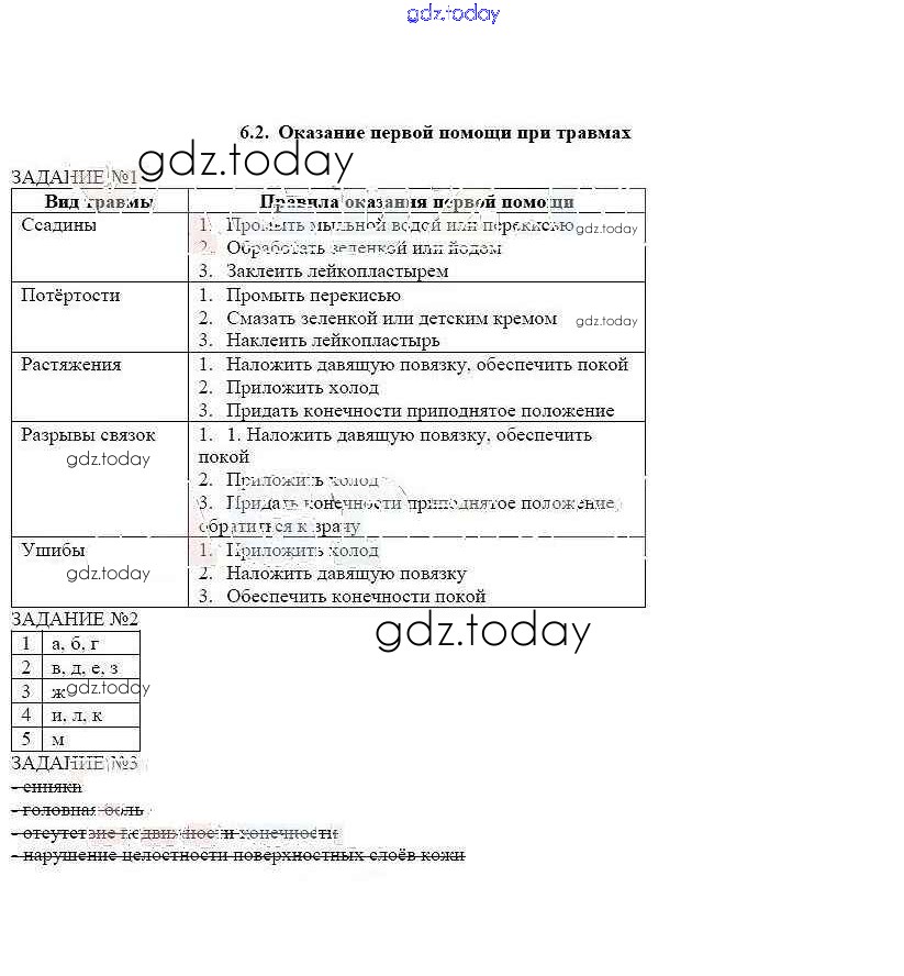 Ответы к Решение к главе 6 6.2 Рабочей тетради по ОБЖ для 6 класса Смирнов, Хренников Просвещение 2016