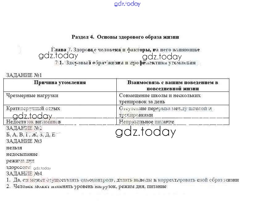 На страницах сайта gdz.today вы найдете учебный и вспомогательный материал, направленный на улучшения знаний школьной программы. ГДЗ - онлайн мир знаний Решение к главе 7 7.1 Рабочей тетради по ОБЖ для 6 класса Смирнов, Хренников Просвещение 2016