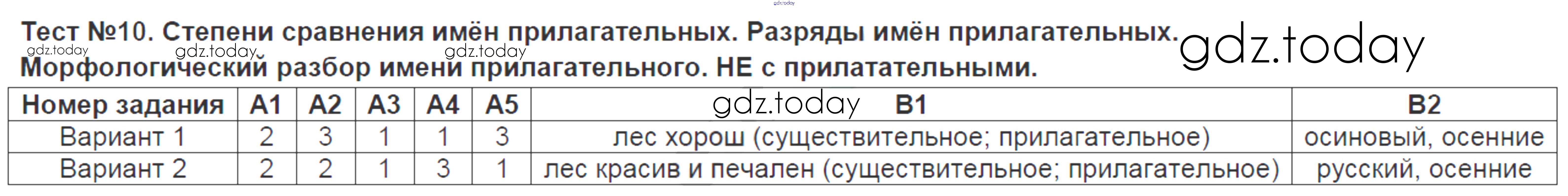 На страницах сайта gdz.today вы найдете учебный и вспомогательный материал, направленный на улучшения знаний школьной программы. ГДЗ - онлайн мир знаний Решение к тестам Тест-10. Степени сравнения имён прилагательных. Разряды имён прилагательных Контрольно-измерительным материалам (КИМ) по Русскому языку для 6 класса Аксенова Экзамен 2014
