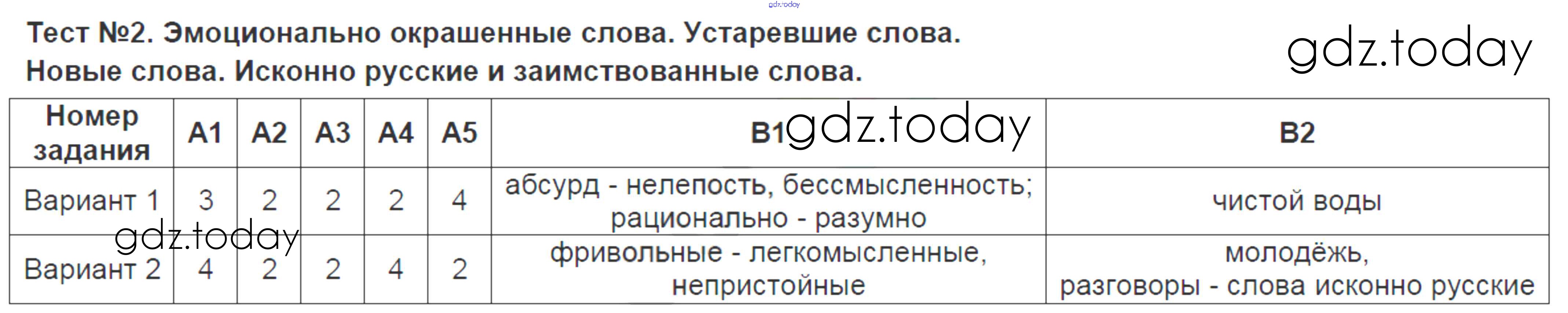 На страницах сайта gdz.today вы найдете учебный и вспомогательный материал, направленный на улучшения знаний школьной программы. ГДЗ - онлайн мир знаний Решение к тестам Тест-2. Эмоционально окрашенные слова. Устаревшие слова Контрольно-измерительным материалам (КИМ) по Русскому языку для 6 класса Аксенова Экзамен 2014