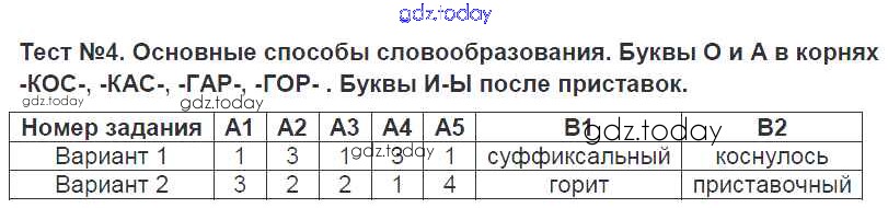 На страницах сайта gdz.today вы найдете учебный и вспомогательный материал, направленный на улучшения знаний школьной программы. ГДЗ - онлайн мир знаний Решение к тестам Тест-4. Основные способы словообразования Контрольно-измерительным материалам (КИМ) по Русскому языку для 6 класса Аксенова Экзамен 2014