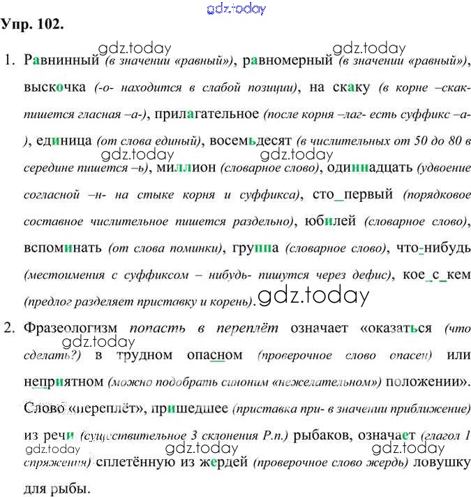 На страницах сайта gdz.today вы найдете учебный и вспомогательный материал, направленный на улучшения знаний школьной программы. ГДЗ - онлайн мир знаний Решение к упражнениям 102 Учебнику по Русскому языку для 6 класса Александрова, Загоровская Просвещение 2020