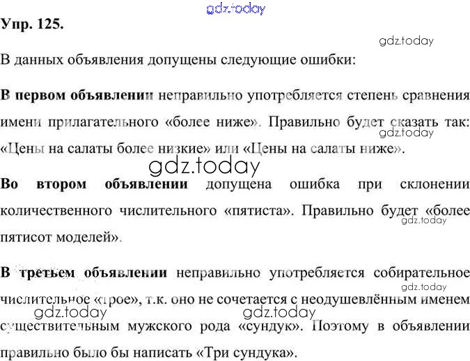 Ответы к Решение к упражнениям 125 Учебнику по Русскому языку для 6 класса Александрова, Загоровская Просвещение 2020