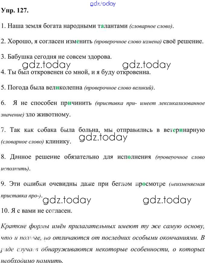 Ответы к Решение к упражнениям 127 Учебнику по Русскому языку для 6 класса Александрова, Загоровская Просвещение 2020