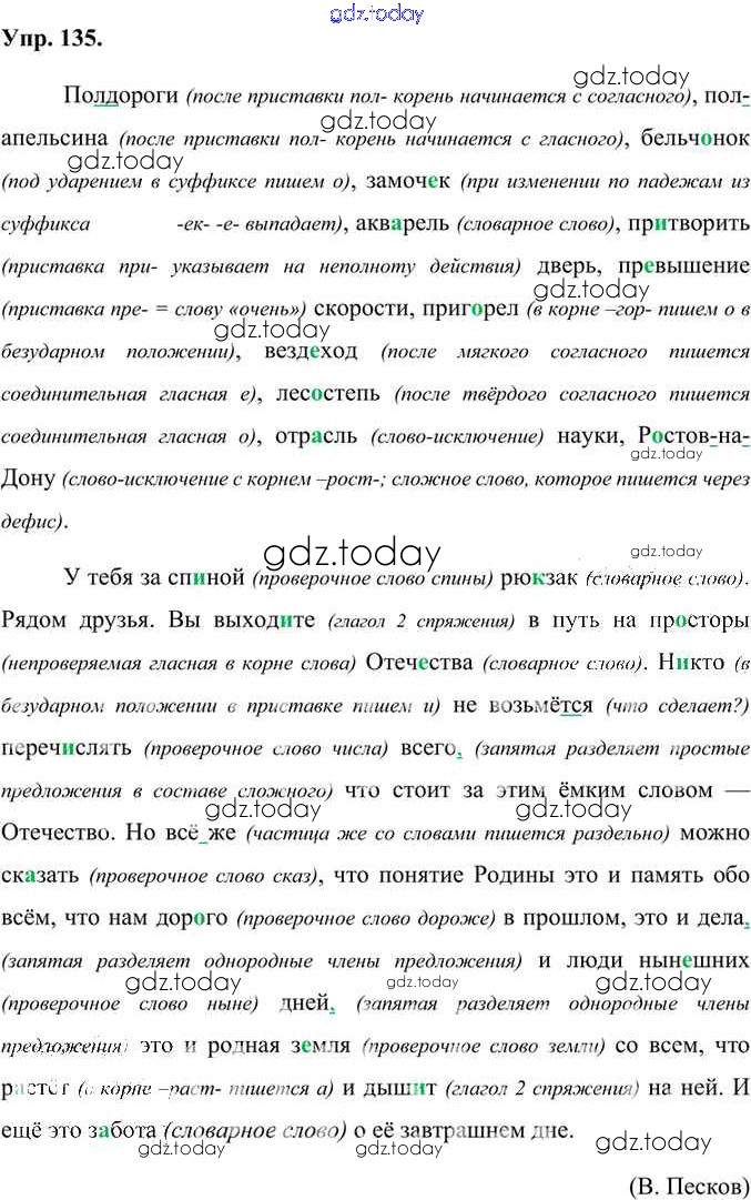 На страницах сайта gdz.today вы найдете учебный и вспомогательный материал, направленный на улучшения знаний школьной программы. ГДЗ - онлайн мир знаний Решение к упражнениям 135 Учебнику по Русскому языку для 6 класса Александрова, Загоровская Просвещение 2020