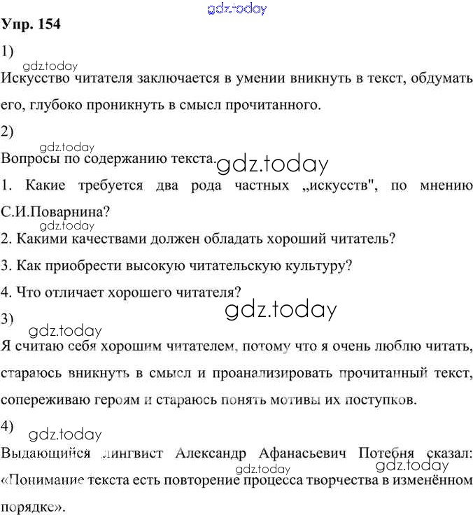 Ответы к Решение к упражнениям 154 Учебнику по Русскому языку для 6 класса Александрова, Загоровская Просвещение 2020