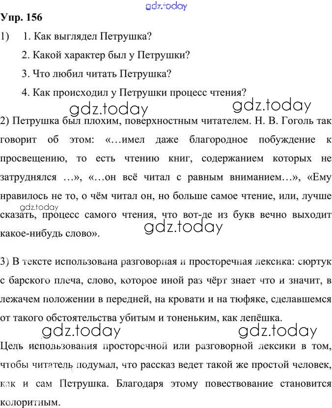 На страницах сайта gdz.today вы найдете учебный и вспомогательный материал, направленный на улучшения знаний школьной программы. ГДЗ - онлайн мир знаний Решение к упражнениям 156 Учебнику по Русскому языку для 6 класса Александрова, Загоровская Просвещение 2020