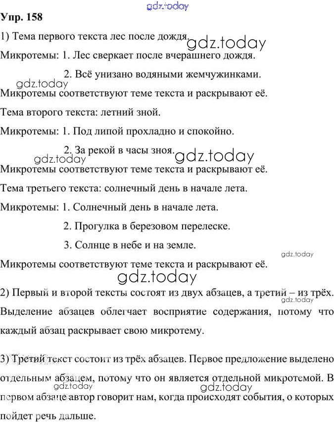 На страницах сайта gdz.today вы найдете учебный и вспомогательный материал, направленный на улучшения знаний школьной программы. ГДЗ - онлайн мир знаний Решение к упражнениям 158 Учебнику по Русскому языку для 6 класса Александрова, Загоровская Просвещение 2020