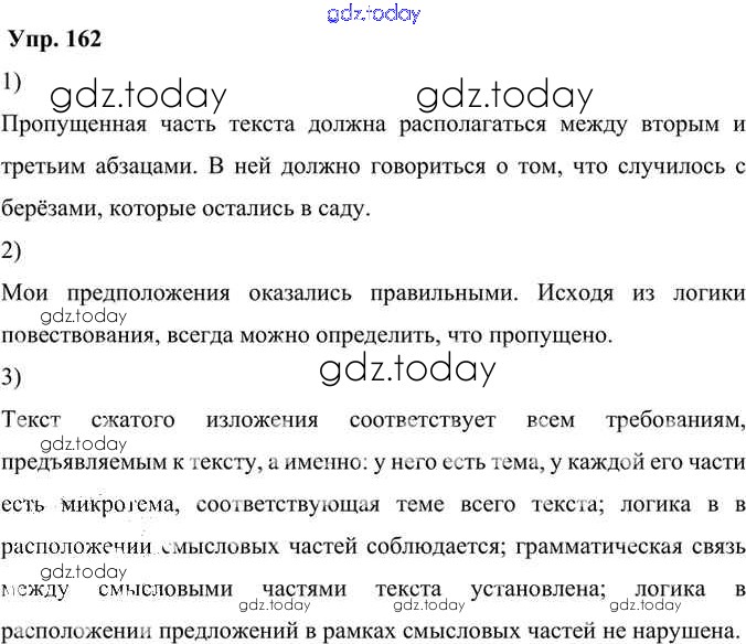 На страницах сайта gdz.today вы найдете учебный и вспомогательный материал, направленный на улучшения знаний школьной программы. ГДЗ - онлайн мир знаний Решение к упражнениям 162 Учебнику по Русскому языку для 6 класса Александрова, Загоровская Просвещение 2020