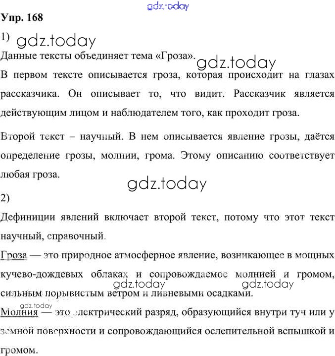 На страницах сайта gdz.today вы найдете учебный и вспомогательный материал, направленный на улучшения знаний школьной программы. ГДЗ - онлайн мир знаний Решение к упражнениям 168 Учебнику по Русскому языку для 6 класса Александрова, Загоровская Просвещение 2020