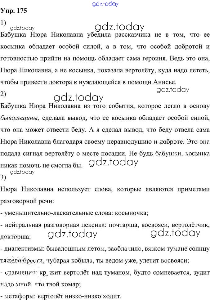 На страницах сайта gdz.today вы найдете учебный и вспомогательный материал, направленный на улучшения знаний школьной программы. ГДЗ - онлайн мир знаний Решение к упражнениям 175 Учебнику по Русскому языку для 6 класса Александрова, Загоровская Просвещение 2020